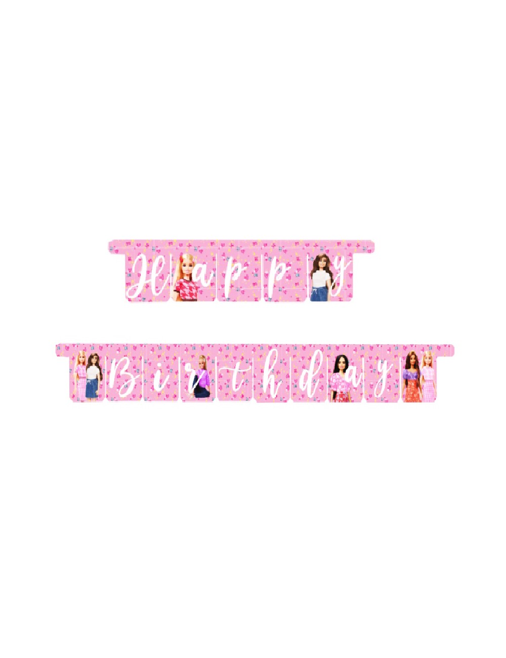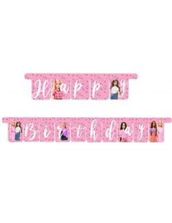 Ghirlanda Party Barbie Happy Birthday, lungime 300 cm, din carton, dimensiuni litera aprox. 17 x 13 cm.