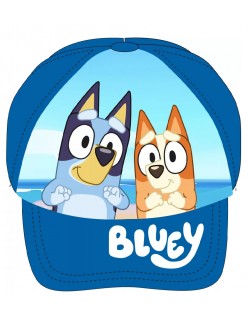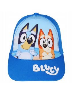 Sapca albastra, Bluey & Bingo, marimi 52 cm si 54 cm, material 100% bumbac, cu exceptia imprimeului care este 100% poliester, se regleaza cu banda de scai la spate.