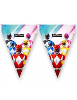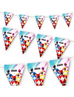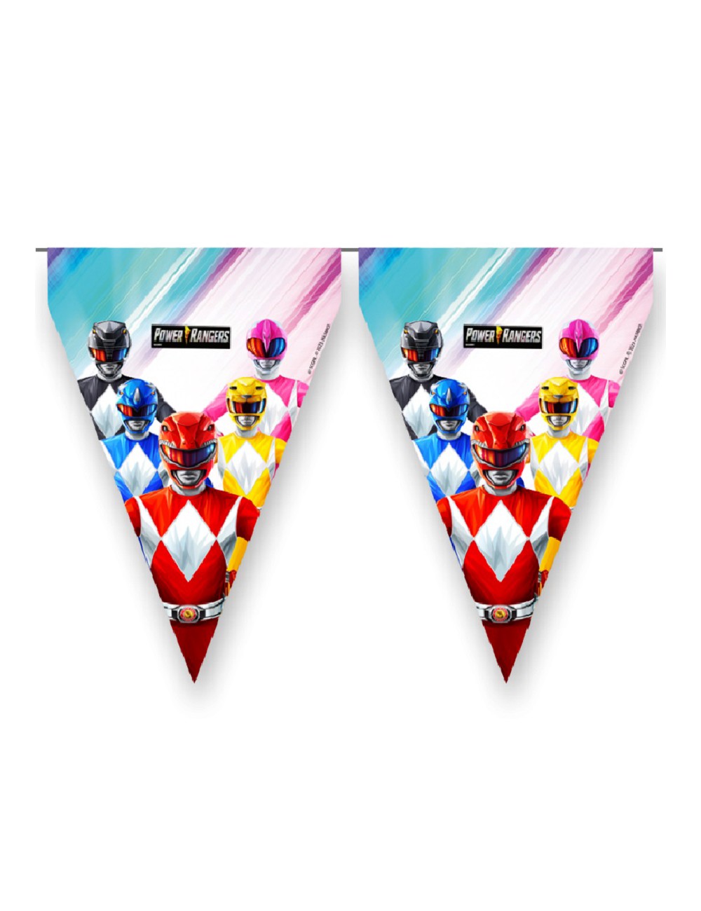 Ghirlanda decor, Power Rangers, lungime 300 cm, alcatuita din 9 stegulete din carton imprimat pe ambele parti, dimensiuni stegulet aprox. 26 x 18 cm.