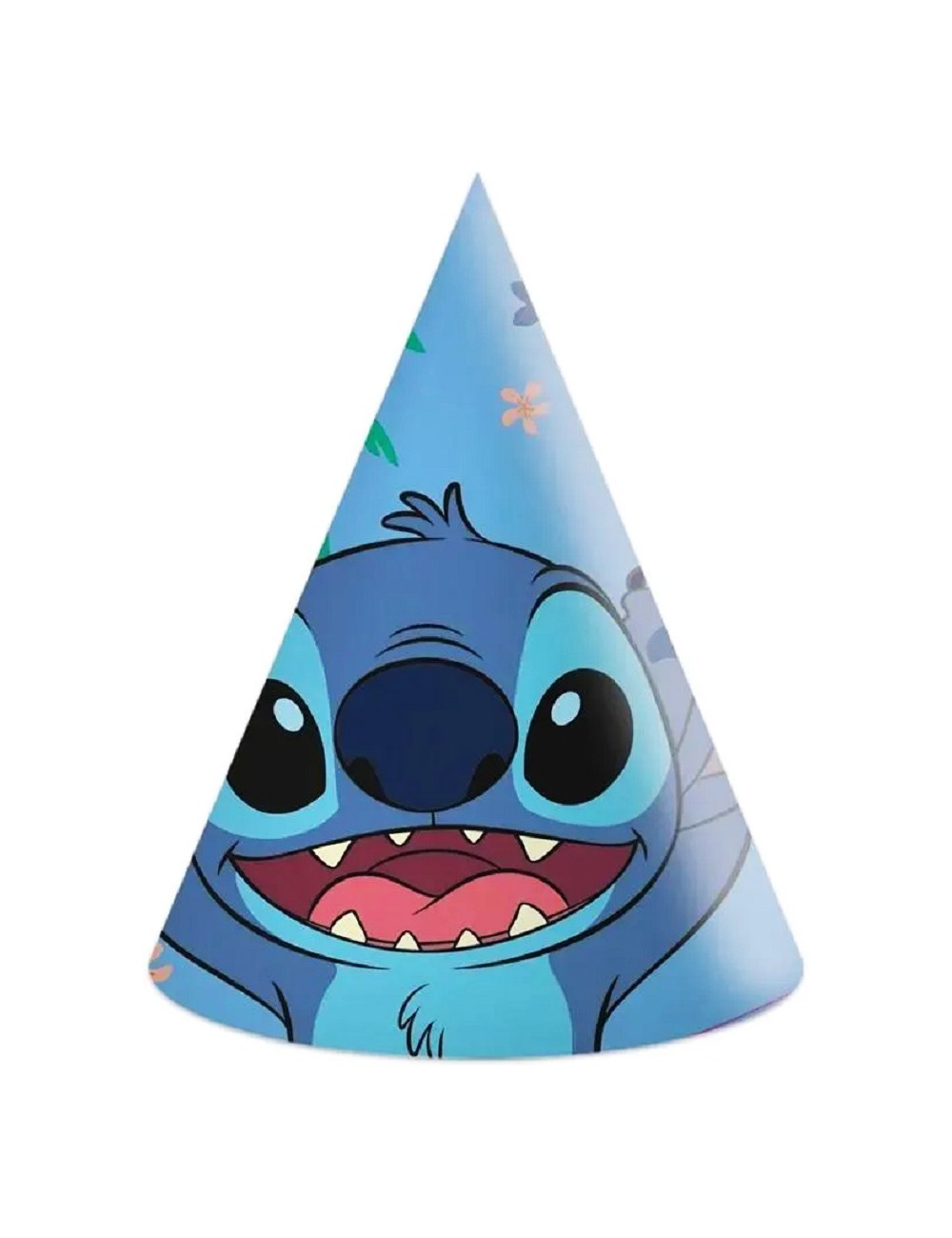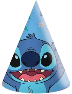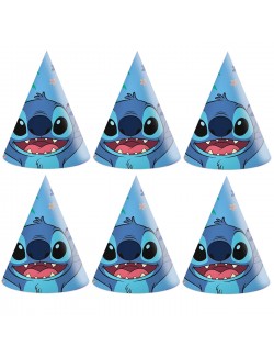 Set 6 coifuri party Stitch (Lilo & Stitch), din carton, inaltime 16 cm, diametru aprox 11 cm, prindere cu elastic.