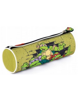 Penar cilindric Testoase Ninja, dimensiuni 21 X 7 cm, culoare albastra cu imprimeu multicolor, inchidere cu fermoar, material rezistent, 100% poliester, 2 modele (alegerea se face aleatoriu).
