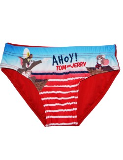 Slip baie Tom si Jerry, rosu, pentru baieti 12 luni-3 ani, material 85% poliester, 15% elastan.