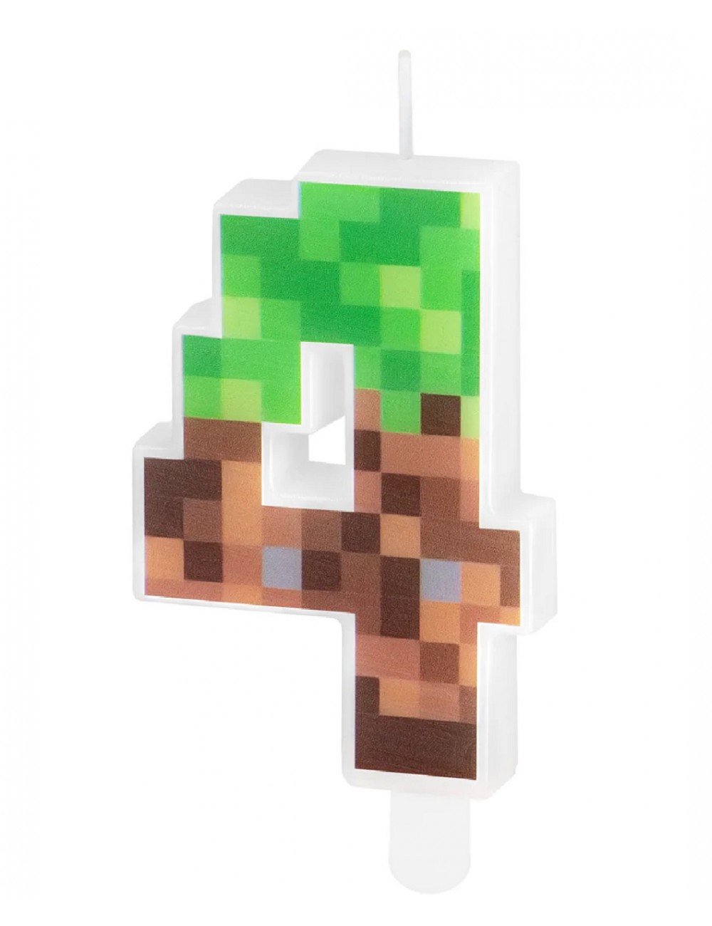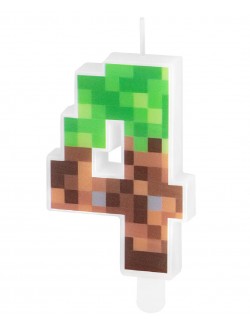 Lumanare tort Minecraft, Cifra 4, din parafina alba, fata este pixelata culori verde-maro, perfecta pentru petreceri aniversare.