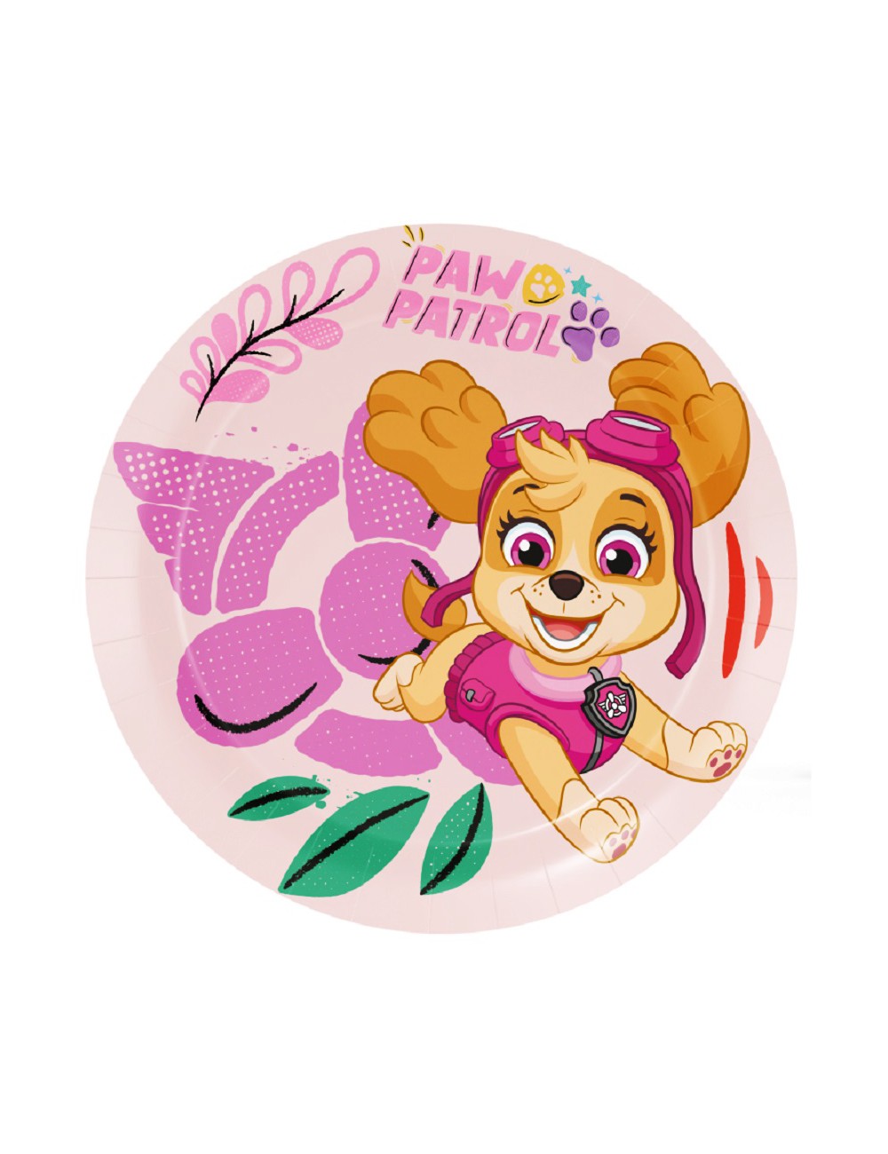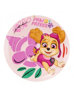 Set 8 farfurii desert, Skye, diametru 18 cm, de unica folosinta, din carton, culoare roz, pentru petreceri tematice Patrula catelusilor.