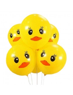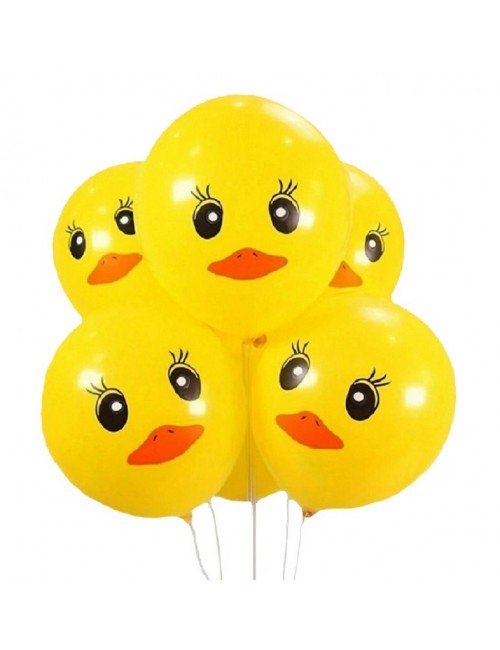 Set 6 baloane Ratuste, 30 cm, din latex galben (cauciuc natural) si imprimeu multicolor.