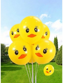 Set 6 baloane ratuste, 30 cm, din latex galben si imprimeu multicolor.