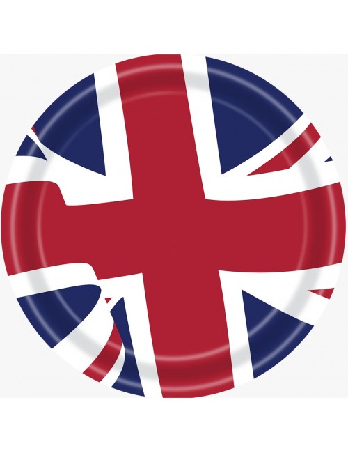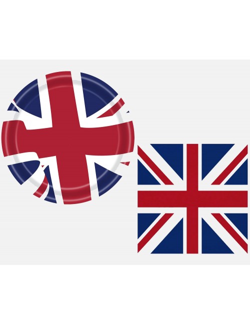 Set party UK Marea Britanie, contine 10 farfurii din carton, cu diametrul de 23 cm si 10 servetele de 33x33 cm (extins), din 2 straturi de hartie, imprimate cu steagul U.K.