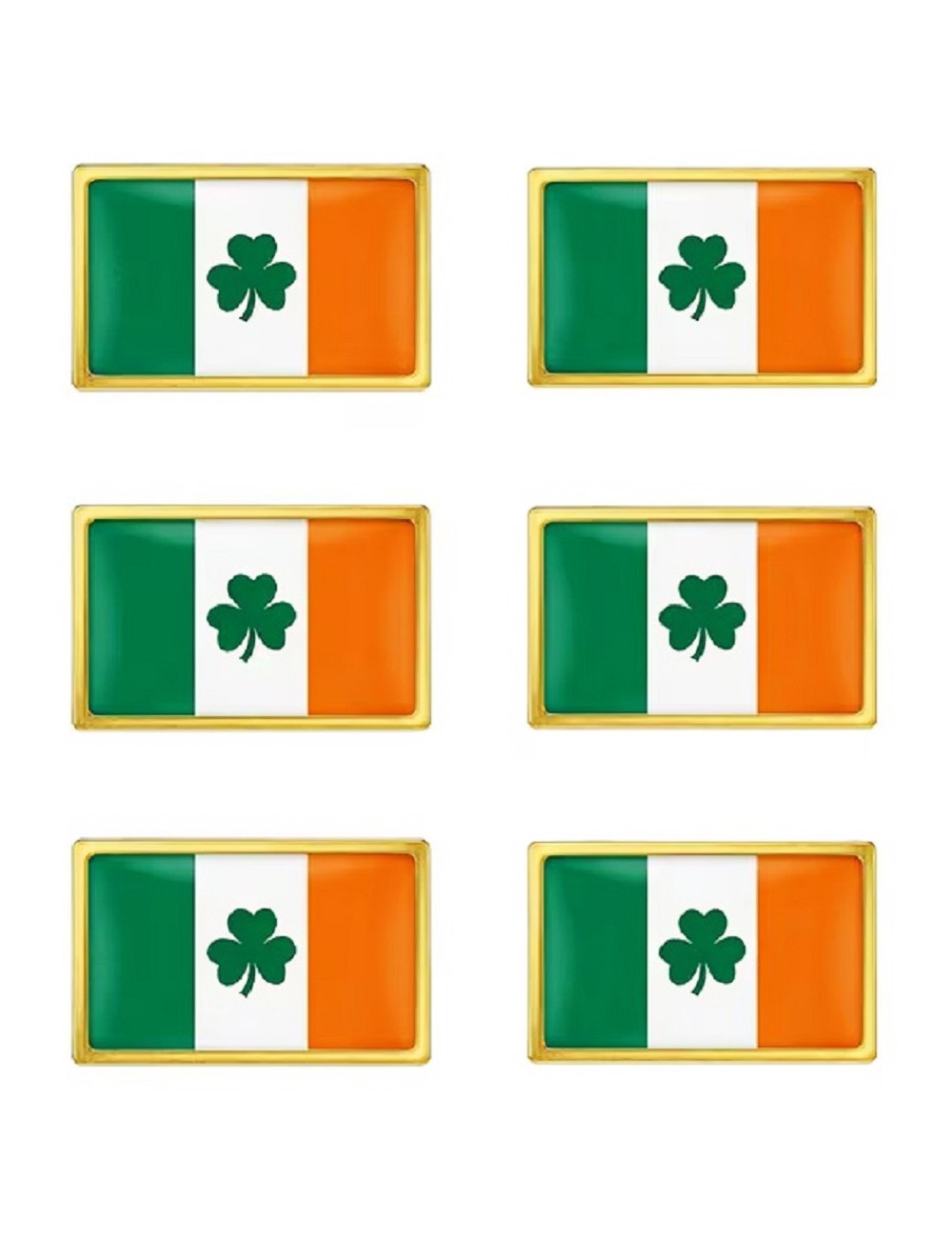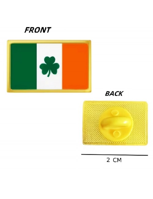 Insigna Steag Irlanda Trifoi St Patrick, dimensiuni 2 x 1,5 cm, din metal auriu si steag emailat.
