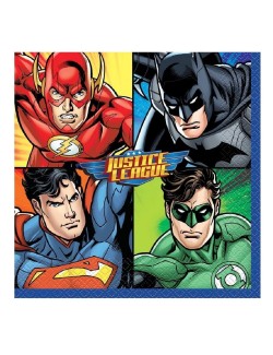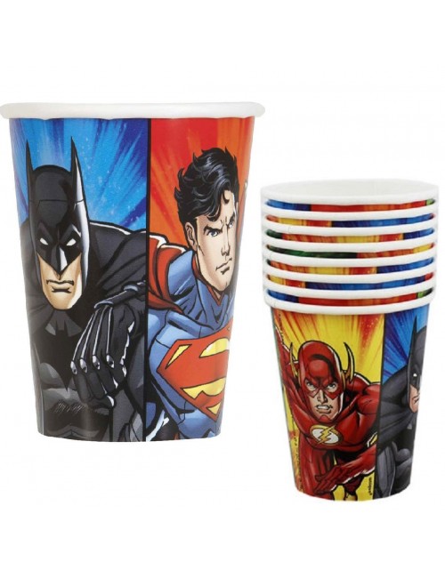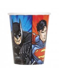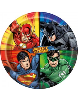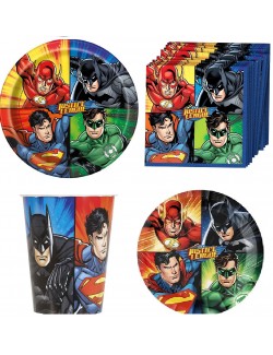 Set petrecere Justice League, pentru 8 persoane, contine produse de unica folosinta, din carton/ hartie, perfecte pentru o petrecere tematica: