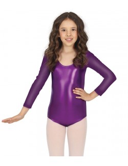Body copii, Mov metalizat, marimi 3-12 ani, cu maneca lunga, fara picior, material putin elastic, 100% poliester, inchidere cu 3 capse intre picioare.