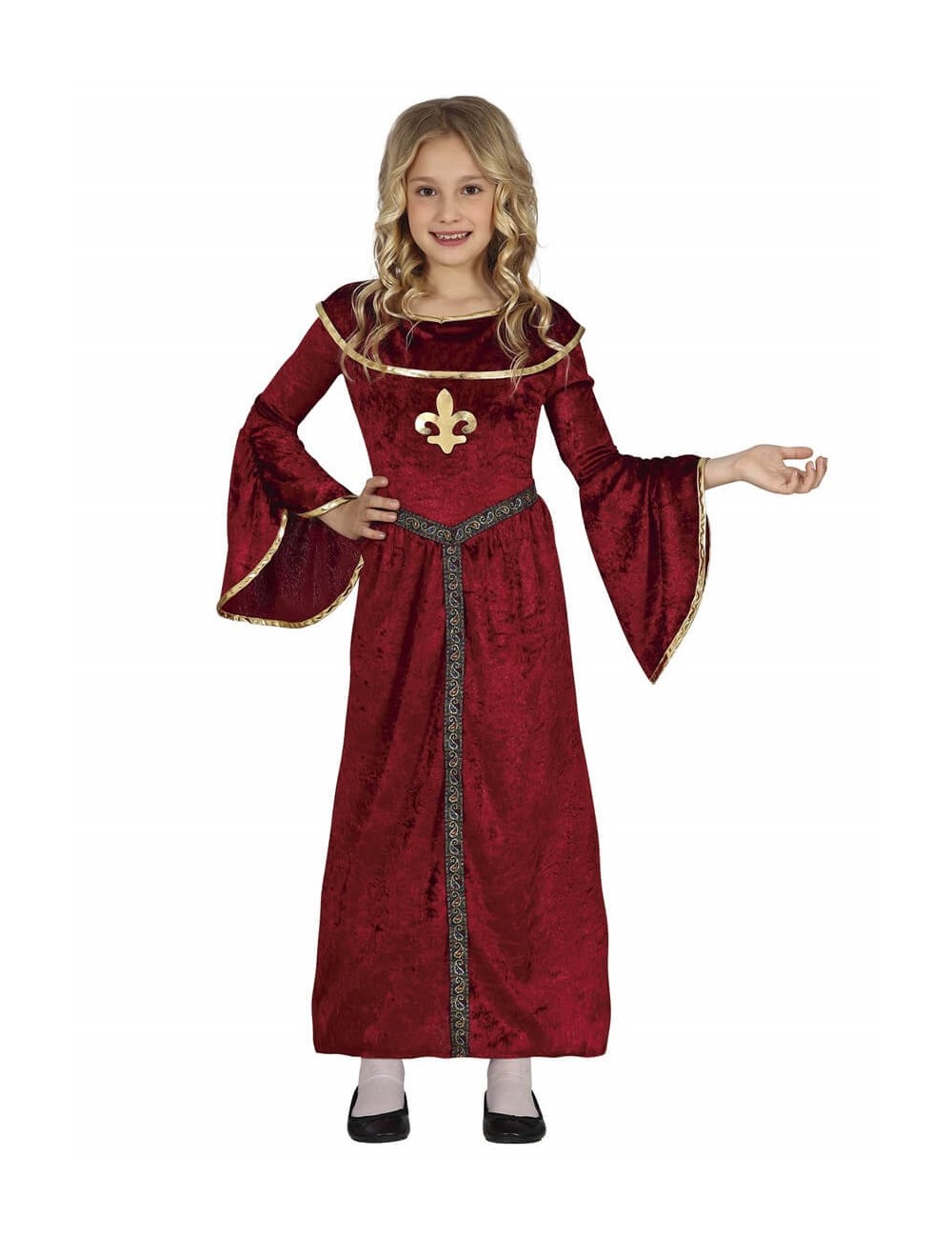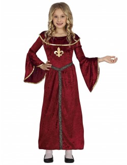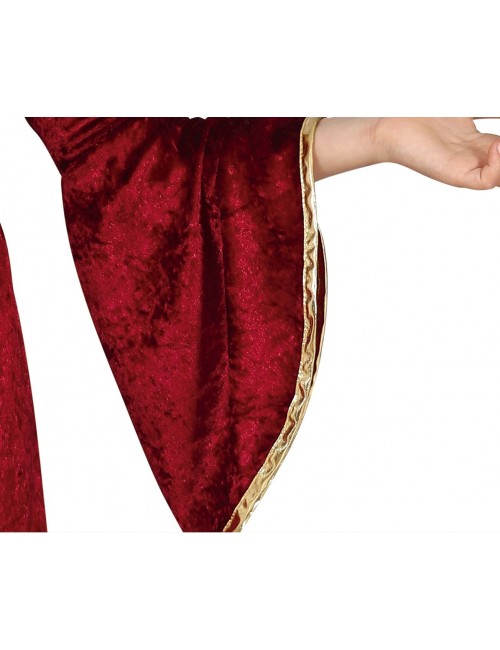 Rochie grena Printesa medievala, pentru copii, contine Rochie cu maneca lunga, din catifea subtire, cu garnitura aurie, 100% poliester.