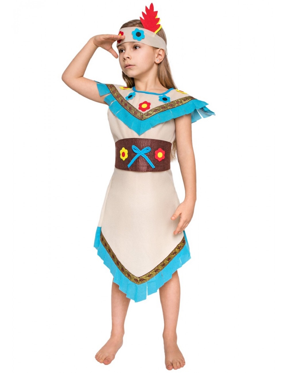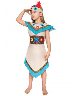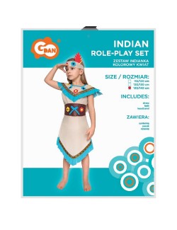 Costum Indianca pentru fete cu inaltime 110-140 cm, contine: rochie, bentita si centura, multicolor, 100% poliester.