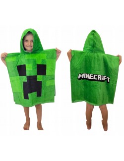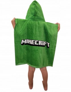 Prosop poncho Minecraft Creeper, 60 x 120 cm, cu gluga, bumbac 100%, densitate 300 gr/mp, culoare verde.