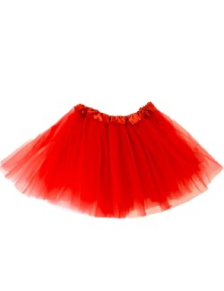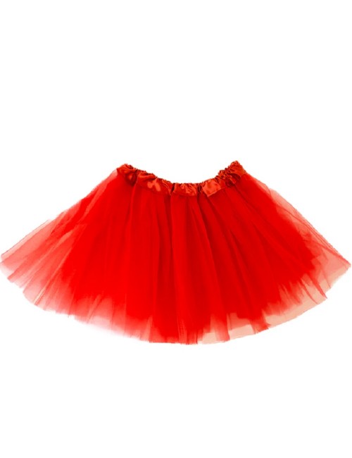 Fusta tutu din tul rosu, pentru copiii, are elastic si o bentita din satin in talie, 100% poliester, trei straturi, total 3 metri de material.
